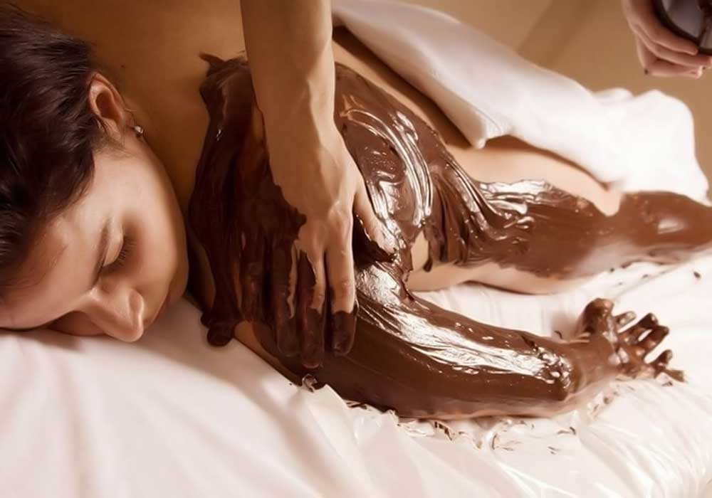Первая часть процедуры – непосредственно шоколадный массаж с нанесением шоколадной пасты на тело пациента, а вторая часть процедуры – обертывание и релаксация.